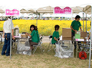北ガスジェネックス(株)より、ミネラル成分をバランス良く含んだ、おいしい水「アクアクララ」の試飲。大塚製薬(株)よりスペアミントウォーター「メトロミント」、ダイズの新ケイタイ「SOY