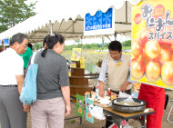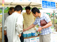 北ガスジェネックス(株)より、ミネラル成分をバランス良く含んだ、おいしい水「アクアクララ」の試飲。大塚製薬(株)よりスペアミントウォーター「メトロミント」、ダイズの新ケイタイ「SOY