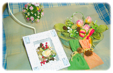 | キャンドルバルーン、ハーブ染め、ハーブ石けん、香り袋、フレッシュハーブのアレンジ、ハーブストラップ、ローズポールスタンド、フレームアレンジ、バンドルアレンジ、ブリキのアレンジ |